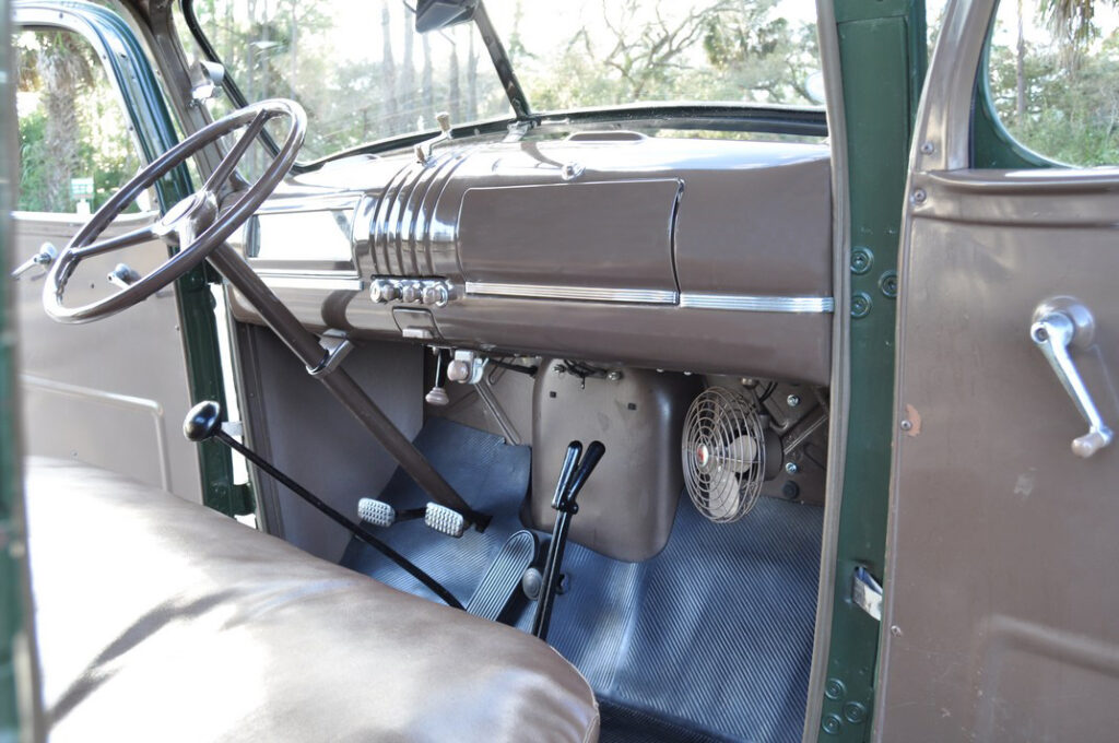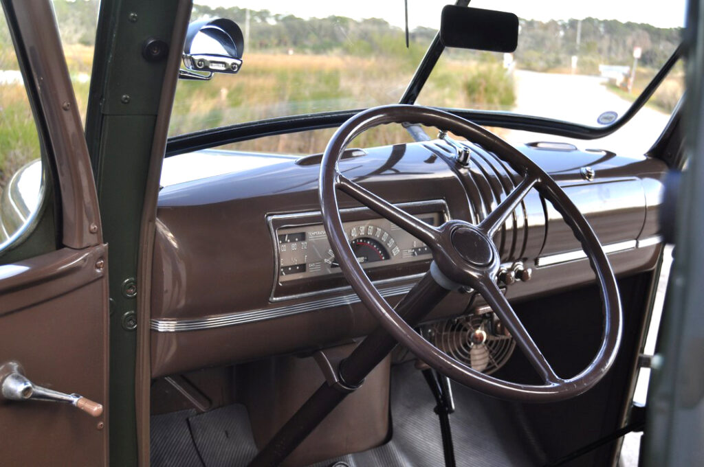 As did most trucks during that time period, this ½ ton came off the assembly line ready for work. Though few options were even available in 1946, it appears none were added on this Feature Truck. Even the standard Brewster Green is its color instead of 7 other no extra cost colors.