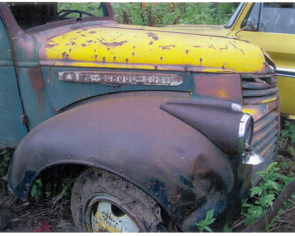1946 GMC with School Bus lettering trim in a Nebraska salvage yard.