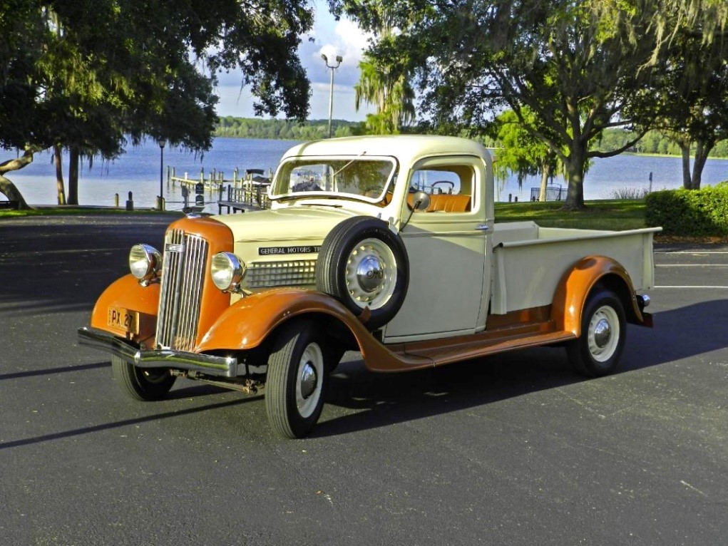 - The hood sides received an optional attractive appearance extra not seen by other pickups. Not only was there a long “General Motors Truck” logo at the top, (actually borrowed from the 1935 GMC big truck the year before) but 5 polished horizontal stainless steel strips below were added to tell the buyers that this pickup is a step above the competition!