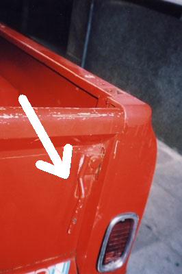 1958-66 latch holds older gate to bed side. Tailgate chains as on earlier GM Pickups.
