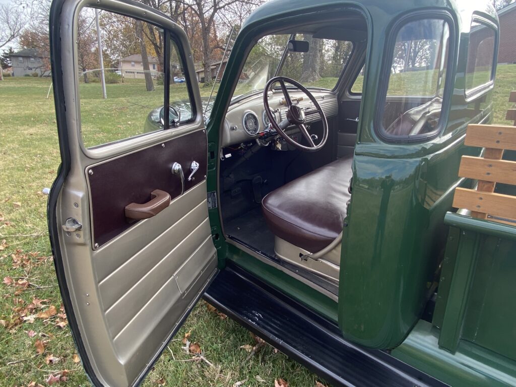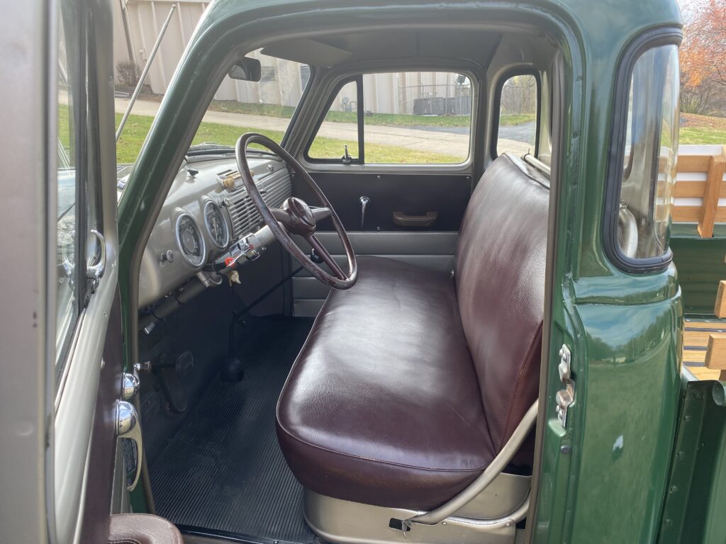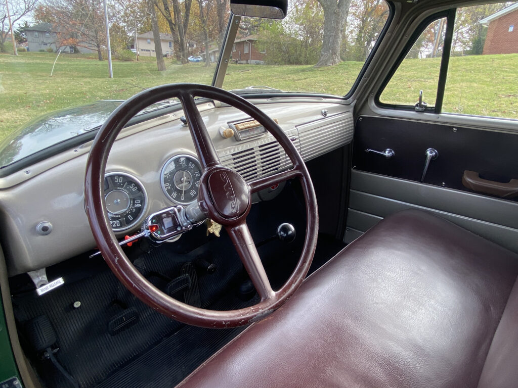 Jack’s pickup has its original 270 cubic inch inline six cylinder engine and the 4 speed transmission that came from the factory 70 years ago. The rear differential ratio is 4.56 as ¾ tons have originally. In today’s world, it is often considered almost too low geared for pleasure driving on the open road and they are now seldom used for heavy hauling (the reason most bought a ¾ ton new).