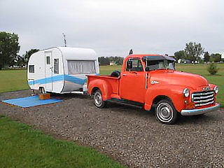 Our regular readers of the Feature Truck of the Month Series know we try to find early GM trucks that are just a little different for an article. Our choice this month certainly fills these qualifications. A 1953 GMC ½ ton owned and totally restored by Allan Fisher of Vulcan, Alberta, Canada. Certainly a rare GMC 1/2 ton, plus it often pulls one of the few remaining 1956 Mercury 12-foot camper trailers in existence. Yes, also a “ground up” restoration by Allan. What an attention getter wherever this pair is seen!