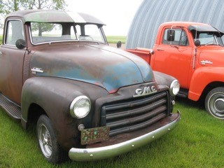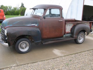 1953 GMC: A Real Survivor: Some History. This ‘53 GMC was sold in a small town in southern Alberta with two automotive dealers. One is a GMC dealer and the other a Ford dealer. In a short few years, this GM was traded into the Ford dealer. The Ford dealer also had a J.I. Case dealership for farm equipment. The good traded in GMC was painted Case orange (as it is today) and was used as a sales truck for the Case dealership in the late ‘50s. When the salesman who used the truck retired, he got the GMC. It then went to his farming relatives, where it hauled many 50 lb. bags of fertilizer for spring seeding. When seeding was finished back inside to keep the leftover fertilizer dry until next spring. When bags were not used anymore the old truck just sat inside, forgotten. It was luck to be talking trucks over coffee when the owner of the GMC said he had a truck that was taking up space and should be gone to a new owner. I went to look at it. It was hard to see at the back of a building in the dark. But looked not bad from what I could see, so made a deal and got it home, only 30 miles. I put it in a building in my yard at the back, in the dark, and left it for another day. Five years later, time to get the old GMC out and start a cleanup. Out into the light with a careful look at it, no rust any place these old trucks usually rust. Paint good for its age. “Orange” with little body damage. A good cleaning with the mouse nests gone it is a much better truck than I first thought. Now it was time to make a plan to save this good old truck. It is too nice original to hot rod, but that would get it back on the road and could be driven but the cost is not cheap. A real good start for a back to very original truck but only good for driving in the summer and with faster highways it would not get driven much. Last and best I think for me is a driver that can be used for fun and light work. Upgraded for safety and faster roads at a reasonable cost so work began. First a better 6 cylinder pressure oiled engine. (GM 235 or 261) I found a GM 261 six that was to be in good shape and it really was so I cleaned it up and it bolts in. A better shifting transmission Saginaw four speed seemed best. It bolts to the engine. Rear diff. is a ten bolt GM out of a mid-size car (right width) drive shaft fits too. Steering was good put in manual disk brakes on front, (all parts in a kit) GM drums rear. Wheels changed to five bolt 15” with radial tires Changed to all 12v for better lights etc. All this upgrade were done in my backyard shop and all just bolt on.