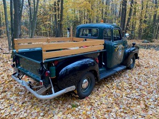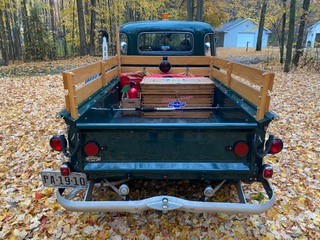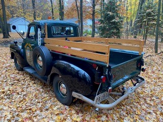 The man that I bought the truck from began a "frame-off" restoration in the late 1980s. He did most of the undercarriage and bodywork. Nearly all the sheet metal is original. When I learned of the truck's original background history, I was determined to present it as it may have appeared back in its day. This truck remains a virtual time machine. The most modern features of the truck today are bias-ply looking radial tires, a dual master brake cylinder, and roller tapered front wheel bearings. I feel that I am a better driver when behind the wheel of this truck, even though it is probably one of the least safe vehicles on the road. The lack of modern technology makes me more attentive when I drive. Less distractions cause me to feel as one with the truck.