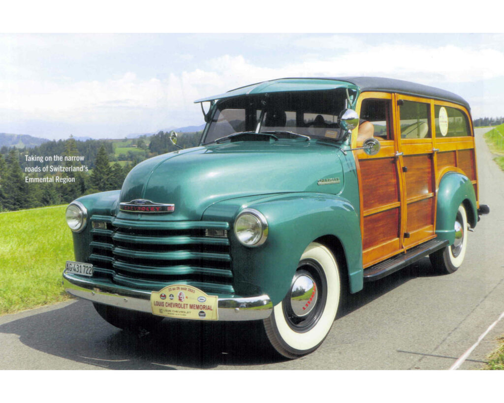 A 1952 CHEVY WOODY BECAME THE PASSION OF Henri Stroele from Switzerland. Since his passing, his family honors his love and dedication to this beautifully restored truck by taking her out on many tours across the Alps.