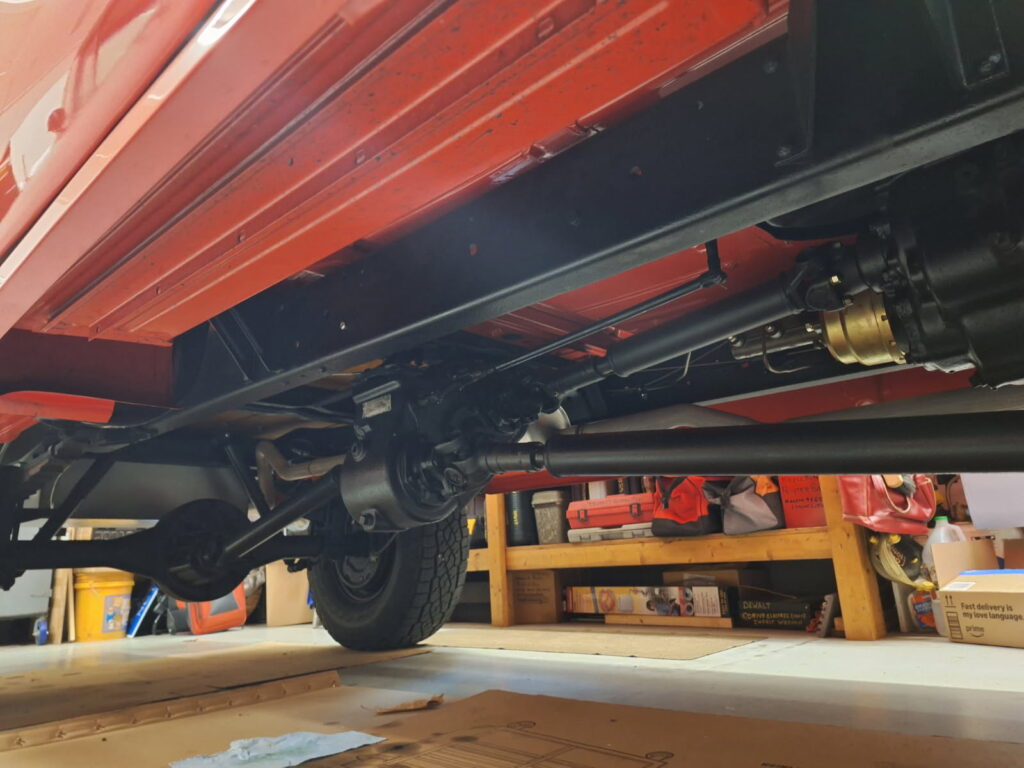On the rear NAPCO installed kit they used the original 7 leaves. GM used an 8 leaf spring. - The mid-cross member toward the rear of the engine is riveted to the two frame rails. A NAPCO dealer will bolt these back in place.