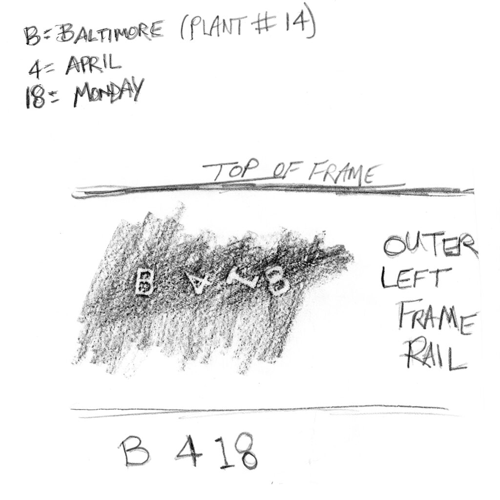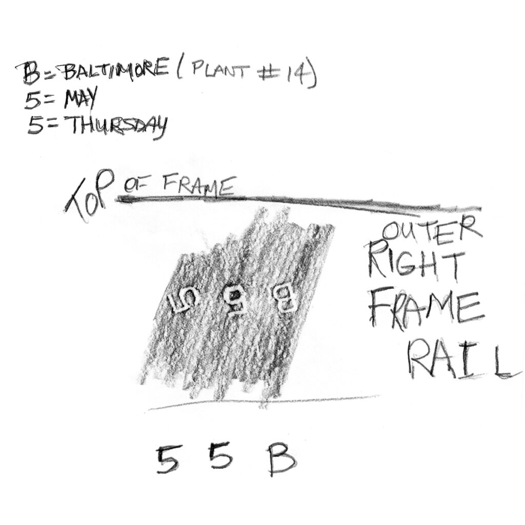 The owner Glen Andrews of Raleigh, North Carolina recently discovered stampings on the inside of the frame rails that tell some on the truck’s history. These are different on both sides and are about a month apart.