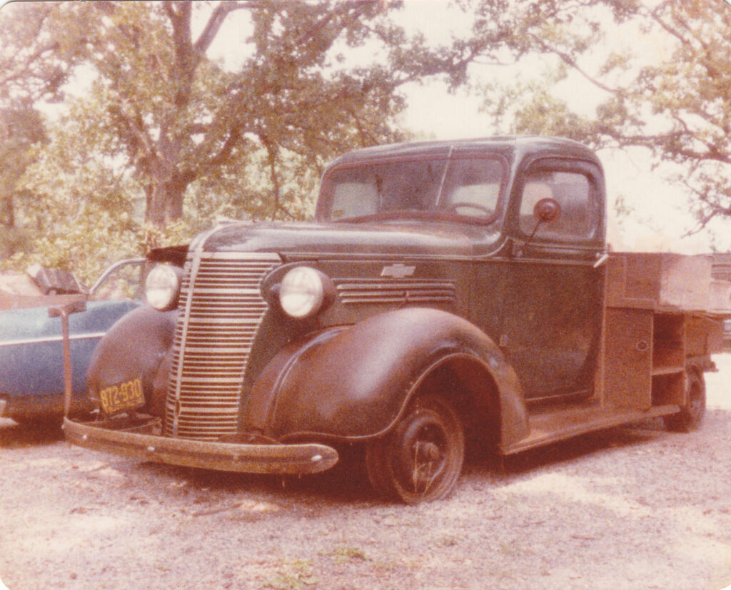 Glen’s ½ ton was originally bought by the father of his then father-in-law. When new it was immediately placed in use to transport heavy equipment for a water well digging company in North Carolina. It was retired 12 years later. By then there was just too many areas that required fixing. The cost would be much less to just by a good used pickup than to correct the aging problems of this 1938 ½ ton. After all, it had been a pure “work truck.” Only absolute necessary mechanicals were updated. It saw water only when it rained! No garage.