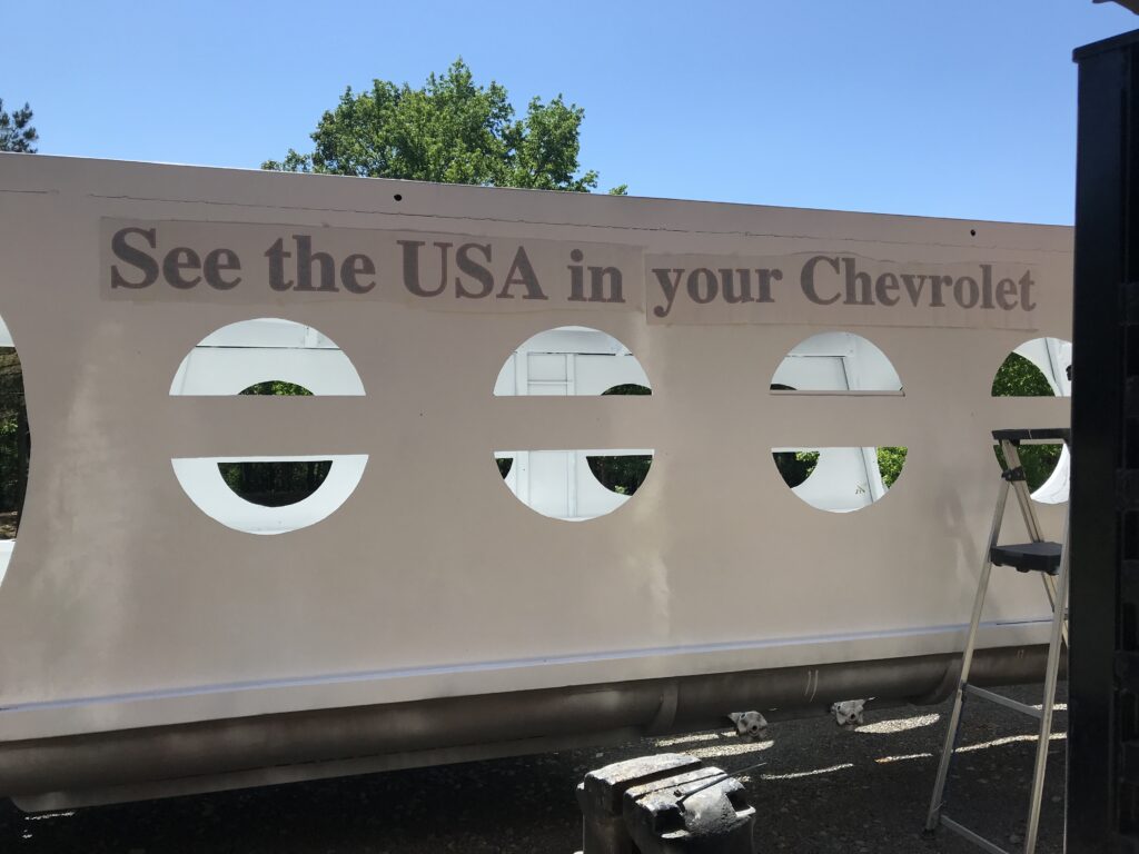 Sand blasted and painted it. Converted the vacuum brakes to air. I have always liked the jingle “See the USA in Your Chevrolet” sang by Diana Shore in the early 1950’s, so I had to have this painted on the side.
