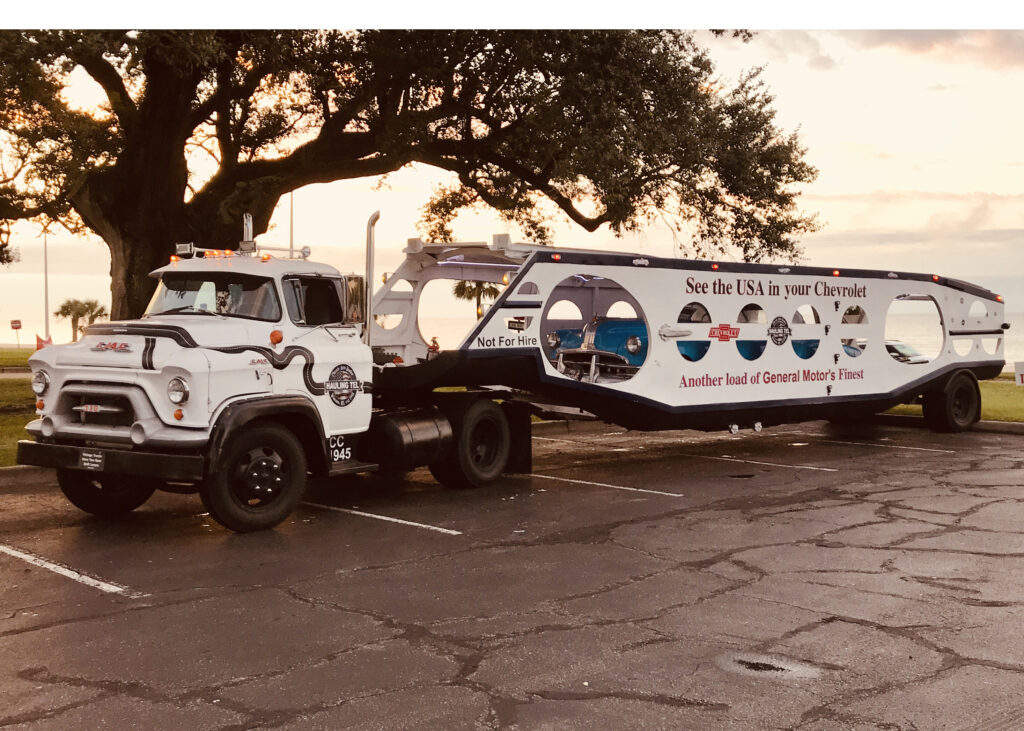 It would only haul 4 cars, and that was a load for the large 454 V-8. I can only imagine what it was like back in the days of 6 cylinder trucks! Drove it to “Crusin the Coast” a couple of times. Would like to have a dime every time someone took a picture of it. I’ve had people pass me taking pictures and then I would see them in a few miles filming me as I went by. Nobody had ever seen anything like it!