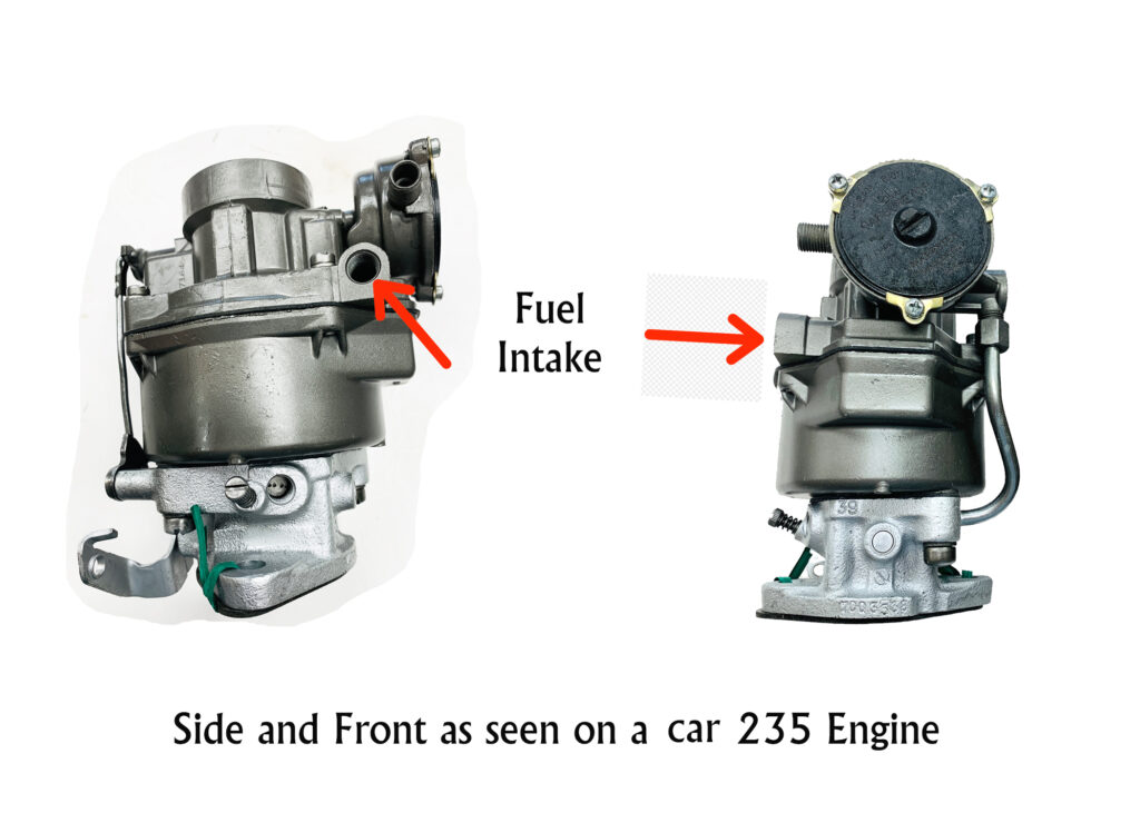 - Your pickup truck’s Rochester Model B Carburetor has the fuel line connected to the front. See below.