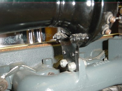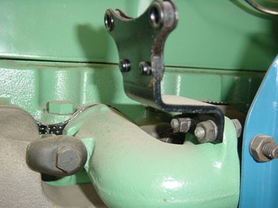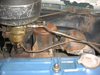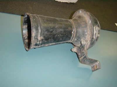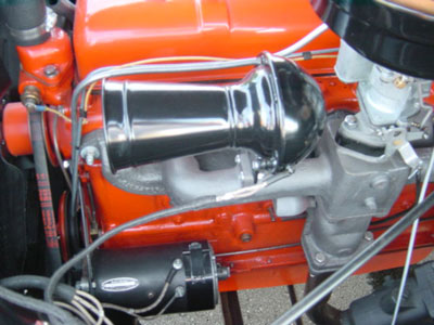 The horn location on the intake manifold of the Chevrolet 216 six cylinder changed position with the addition of the accessory oil filter. This oil filter was attached to the front of the intake manifold. A special shaped horn bracket was necessary to move the horn forward away from the filter. This bracket was included in the box with the new oil filter package.