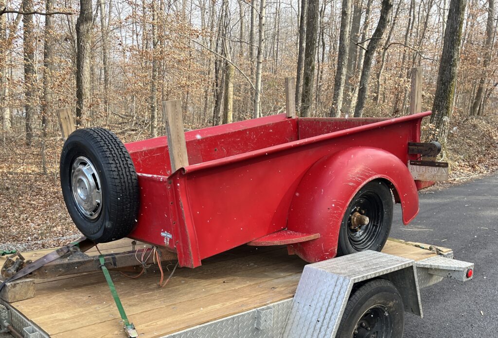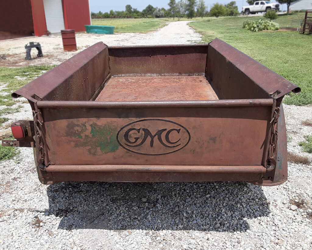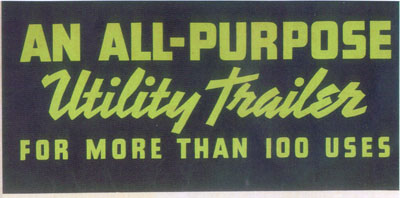 One of General Motors ideas was to increase sales by adding a new product that their GMC dealers could market. This was the Trailabout, an all-purpose small trailer that could be used by both car and truck owners. GMC produced it with little added expense. Most items were already used on their 1/2 ton pickup. The bed, taillights, fenders, wheels, and hubcaps were in stock. The additional GM investment was the light weight metal frame with tongue.