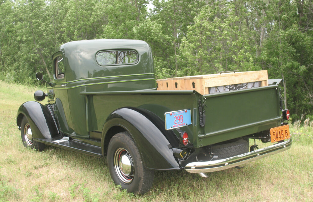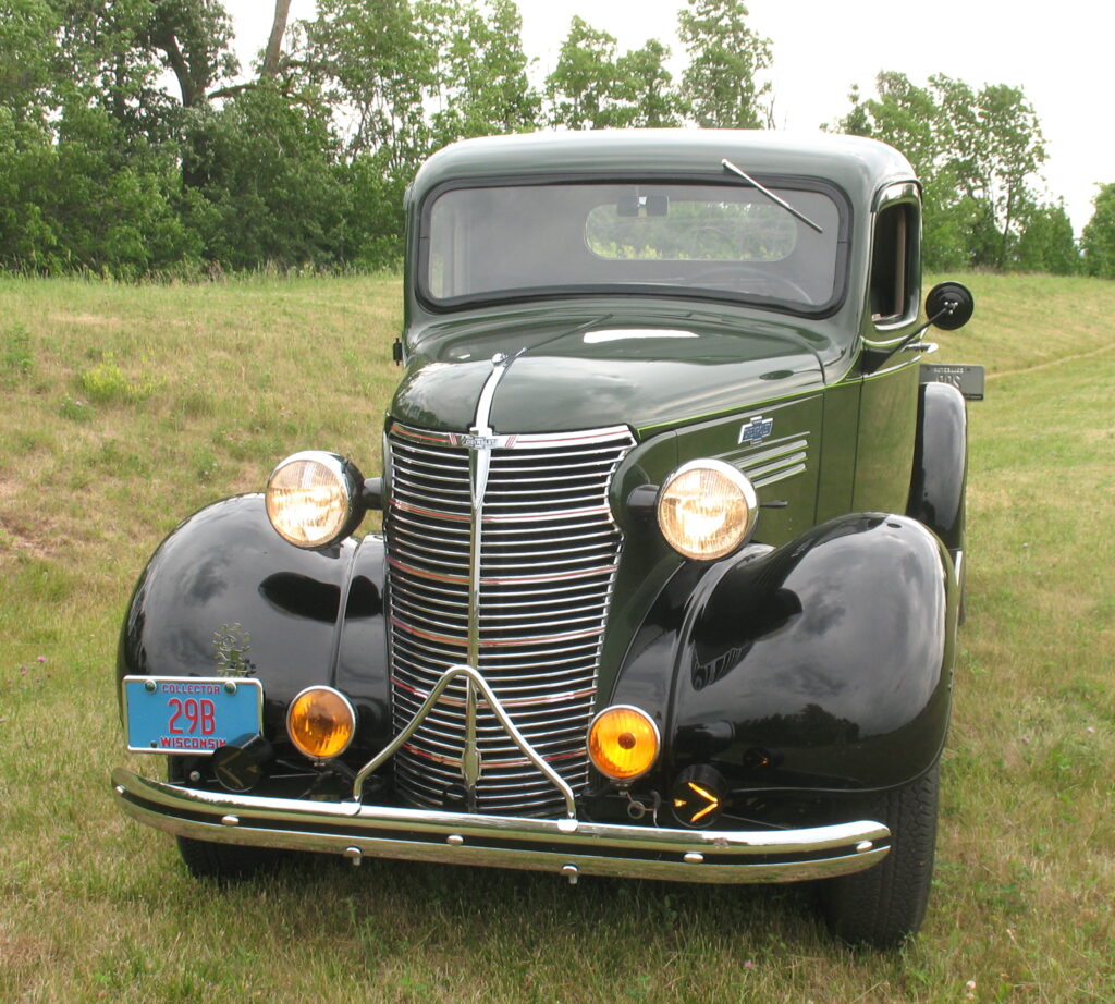 As an early truck enthusiast, Ray Geweke found this rare 1938 Chevy ¾ ton pickup near Fargo, ND, and pulled it to his Wisconsin home in 1981. Its total restoration was begun many years later! Ray had time to find many new original parts and made it look like it did when new about 88 years ago!