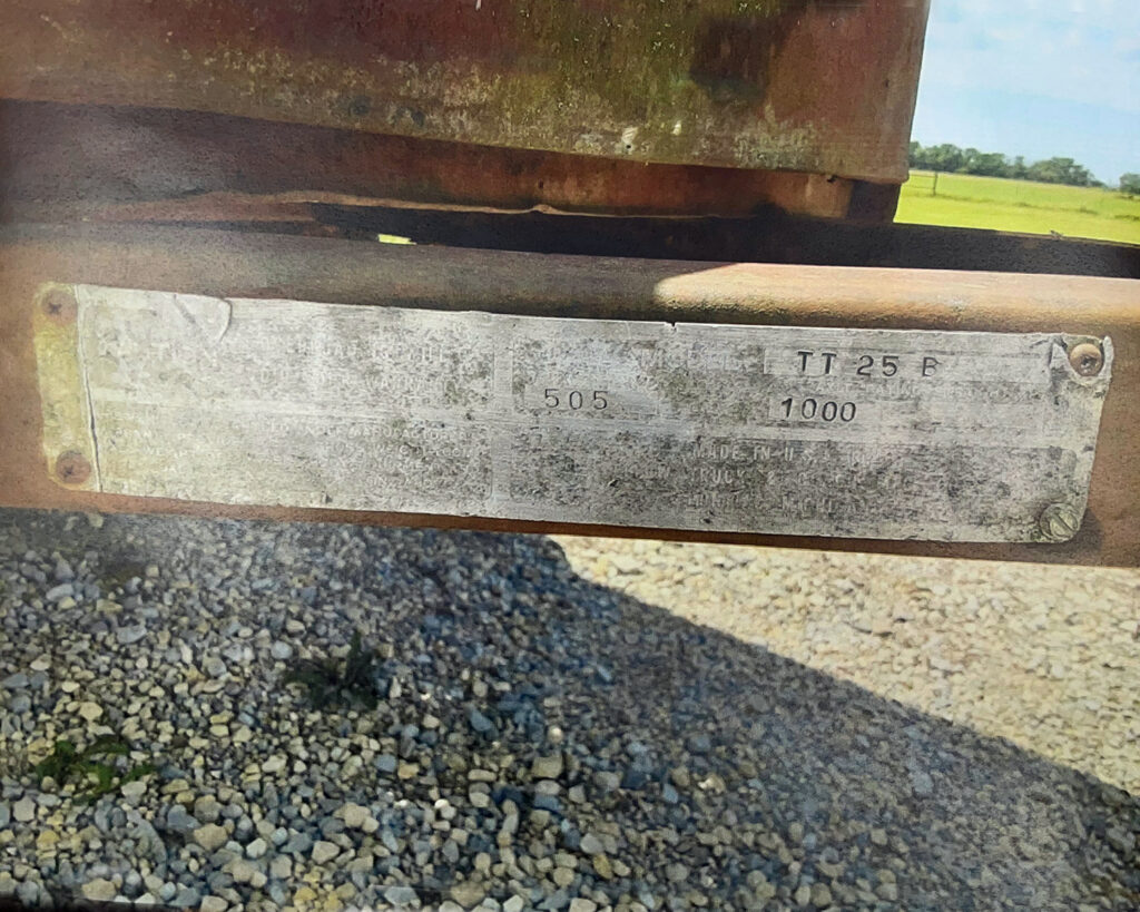 The factory ID plate still on the trailer tongue.